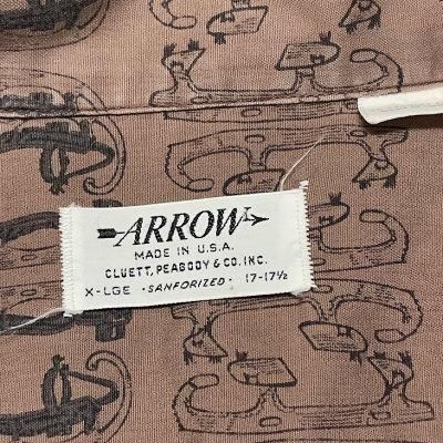「Late 1950'S Used ARROW All Over Pattern Cotton Open Collar L/S Shirt Size XL」